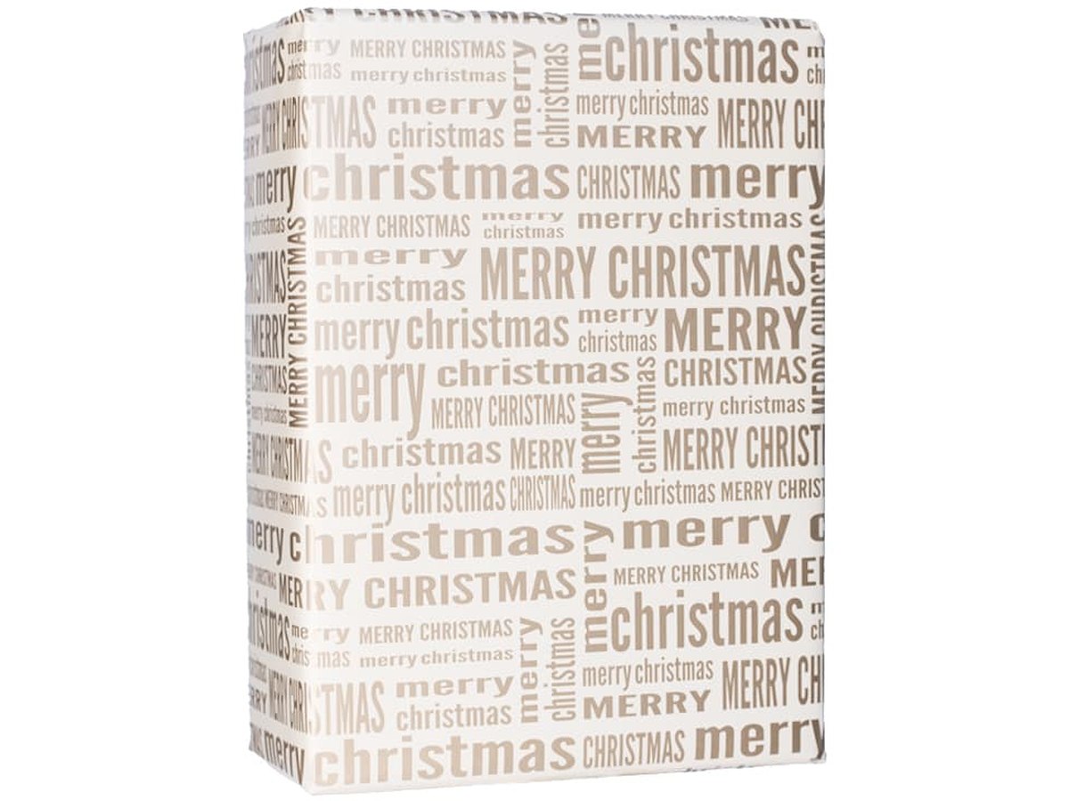 Gavepapir, Creme med guld Merry Christmas, Coated, 57 cm, 150 m