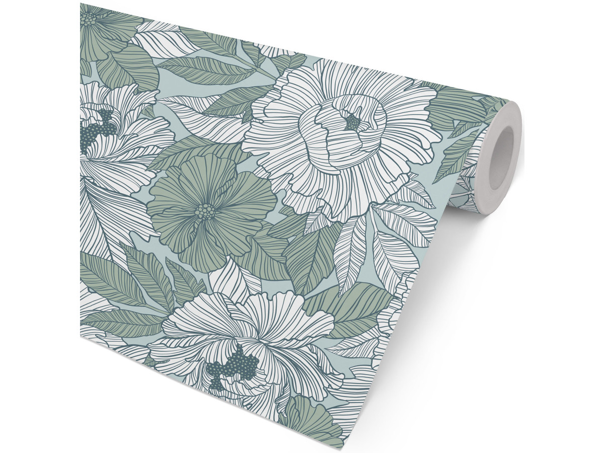Gavepapir, Marquel Flower Mint, 57 cm, 154 m, Hedlunds