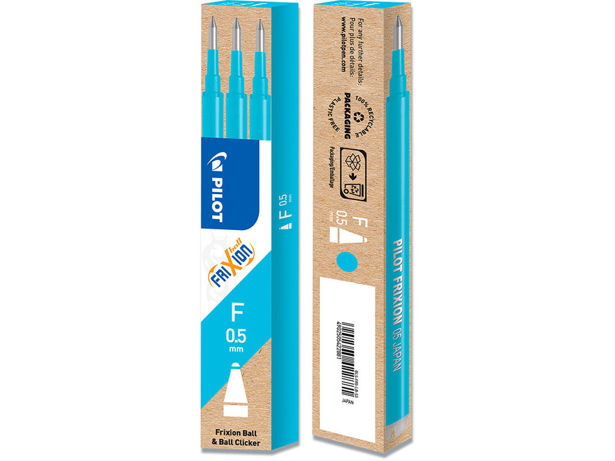 FriXion pennen er med en helt ny revolutionerende blæk, hvor det skrevne let kan viskes ud igen. Blækket er varmefølsomt, og forsvinder ved den friktion der opstår, når der gnides på det skrevne. Der kan skrives, slettes og rettes i det uendelige uden at papiret ødelægges. Pennen glider let hen over papiret med en klar og tydelig streg. Sæt med tre refills i etui til FriXion Ball, FriXion Slim og FriXion Clicker. Fin spids.