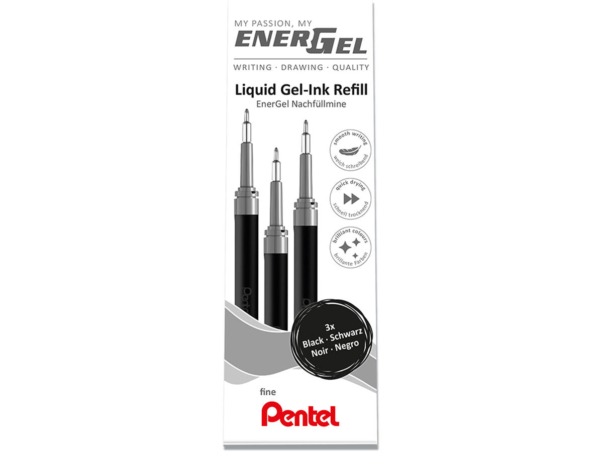 Rollerball gelpen refill, 0.5 mm, 0.25 mm, Sort, 3 stk, Pentel EnerGel LRN5-3A