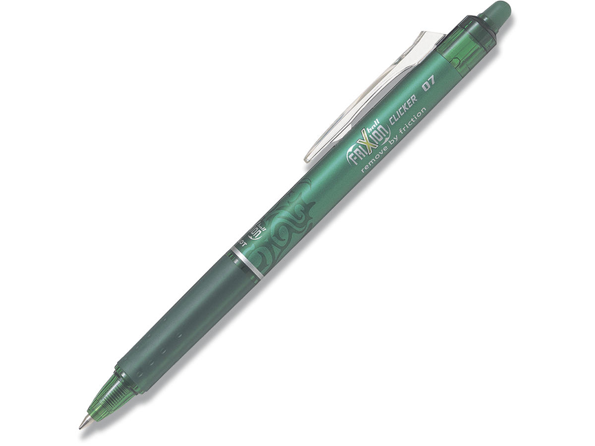 FriXion er en moderne og flot pen med en helt revolutionerende blæk, hvor det skrevne let kan viskes ud igen. Blækket er varmefølsomt, og forsvinder ved den friktion der opstår, når der gnides på det skrevne. Der kan skrives, slettes og rettes i det uendelige uden at papiret ødelægges. Det specielle "viskelæder" på FriXion-pennen varmer hurtigt papiret op uden at skade det. Det skrevne er nu væk, og der kan skrives igen. Pennen glider let hen over papiret med en klar og tydelig streg. FriXion Clicker er med klikmekanisme og konisk spids. Fås i et væld af flotte farver.