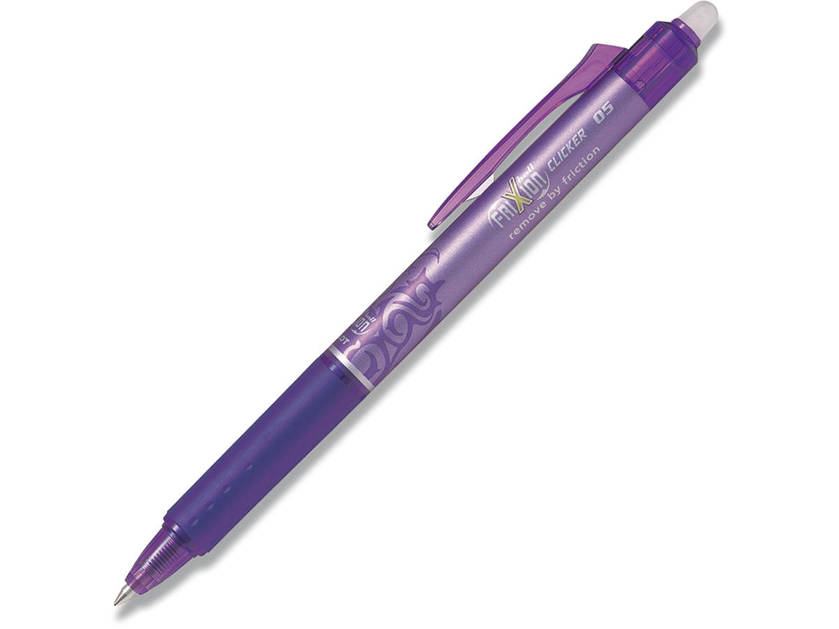 FriXion er en moderne og flot pen med en helt revolutionerende blæk, hvor det skrevne let kan viskes ud igen. Blækket er varmefølsomt, og forsvinder ved den friktion der opstår, når der gnides på det skrevne. Der kan skrives, slettes og rettes i det uendelige uden at papiret ødelægges. Det specielle "viskelæder" på FriXion-pennen varmer hurtigt papiret op uden at skade det. Det skrevne er nu væk, og der kan skrives igen. Pennen glider let hen over papiret med en klar og tydelig streg. FriXion Clicker er med klikmekanisme og konisk spids. Fås i et væld af flotte farver.