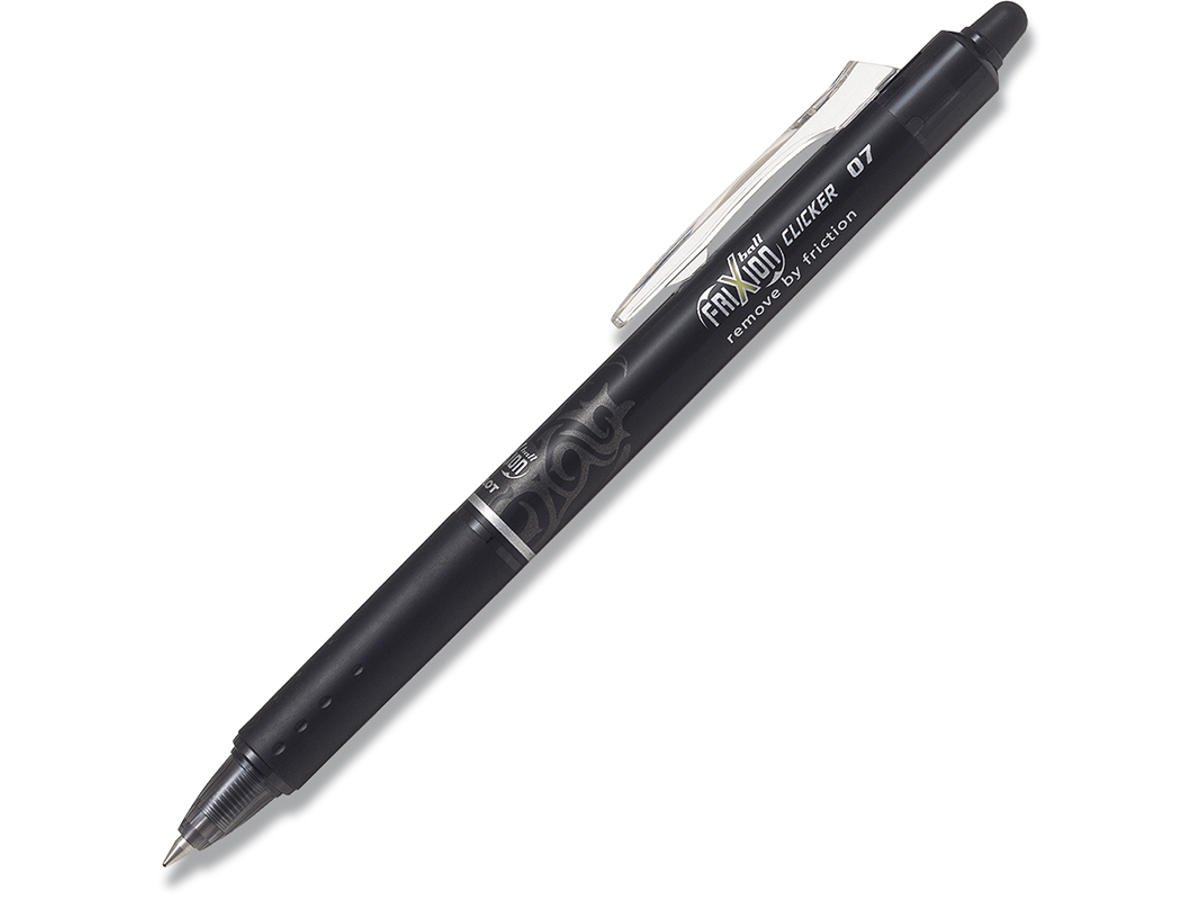 FriXion er en moderne og flot pen med en helt revolutionerende blæk, hvor det skrevne let kan viskes ud igen. Blækket er varmefølsomt, og forsvinder ved den friktion der opstår, når der gnides på det skrevne. Der kan skrives, slettes og rettes i det uendelige uden at papiret ødelægges. Det specielle "viskelæder" på FriXion-pennen varmer hurtigt papiret op uden at skade det. Det skrevne er nu væk, og der kan skrives igen. Pennen glider let hen over papiret med en klar og tydelig streg. FriXion Clicker er med klikmekanisme og konisk spids. Fås i et væld af flotte farver.