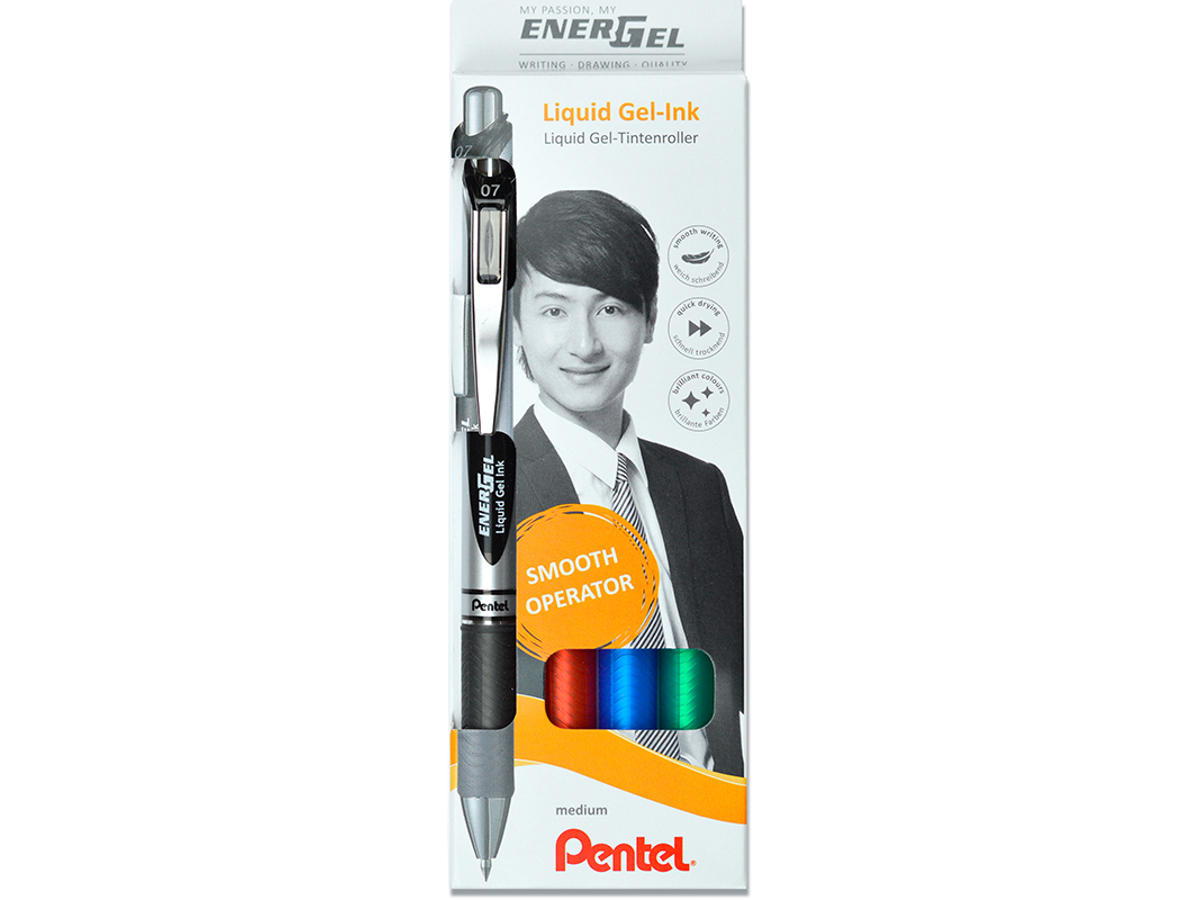 Energel blæk er en mellemting mellem en almindelig roller og en gelpen. En moderne rollerball med en ny type blæk, der tørrer hurtigere og får gelpennen til at skrive længere. Pentel Energel har samtidig beholdt gelpennes gode skriveegenskaber, så blækket flyder let og jævnt og uden at klatte. Dette giver en unik skriveegenskab samtidigt med at Energel skriver tre gange så langt og tørrer væsentligt hurtigere i forhold til en almindelig gelpen. Energel penne har semi-transparent beholder samt gummi greb til komfortabelt brug. Anbefalet til “den der skriver meget” og venstrehånds skrivere. EnerGel Liquid-Gel-Roller er en del af Pentel Recycology gruppen: Pentel Recycology produkter er miljøvenlige da produktet er fremstillet af 54% genbrugt materiale. (Procentmæssigt baseret på den totale vægt af produktet eksklusiv forbrugsstoffet).
