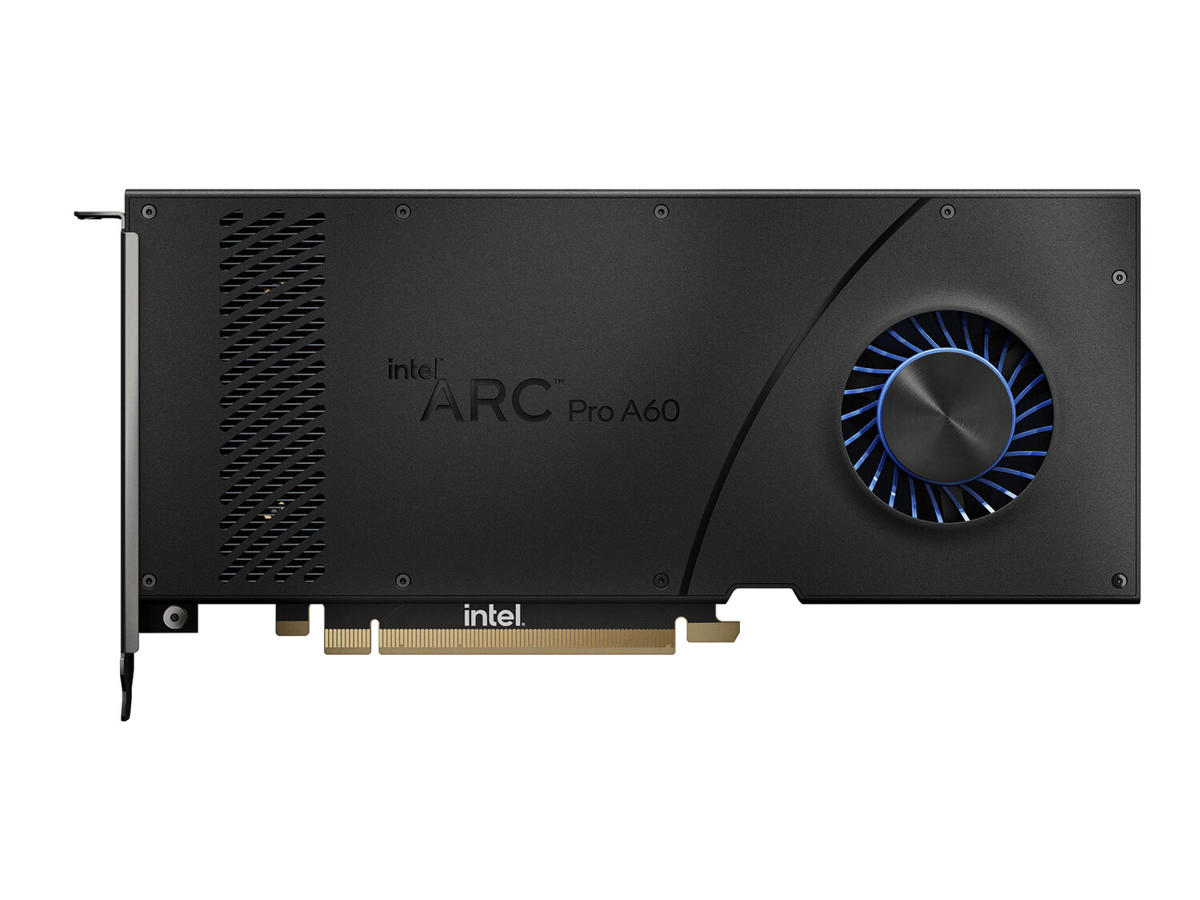 Intel Arc Pro A60. Grafikprocessor familie: Intel, Grafikprocessor: Arc Pro A60, Processorfrekvens: 2000 MHz. Diskret grafikadapterhukommelse: 12 GB, Hukommelsestype for grafikadapter: GDDR6, Hukommelsesbus: 192 Bit. Maksimal opløsning: 7680 x 4320 pixel. DirectX-version: 12 Ultimate, OpenGL-version: 4.6. Grænsefladetype: PCI Express x16 4.0. Kølingstype: Aktiv, Antal blæsere: 1 blæser(e)