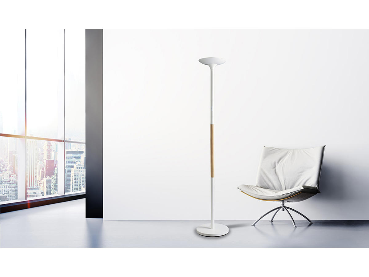 Gulvlampe, Hvid-træ, Med lysdæmper, LED, Unilux Pryska Uplight