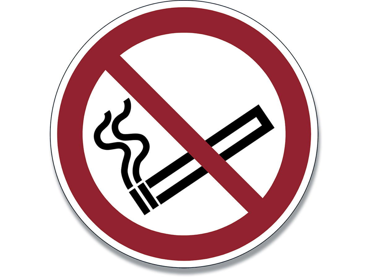 Registreret permanent forbudsskilt "Rygning forbudt", P002 i henhold til ISO 7010.