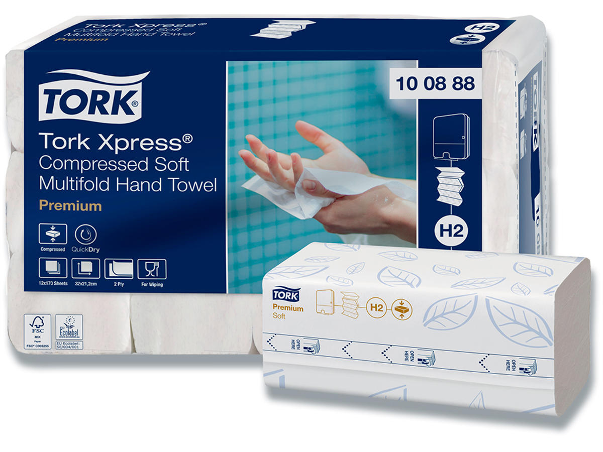 - Udnyt pladsen - brug disse komprimerede håndklædeark med den kompakte Tork Xpress® dispenser på toiletter med lav til medium brugertrafik