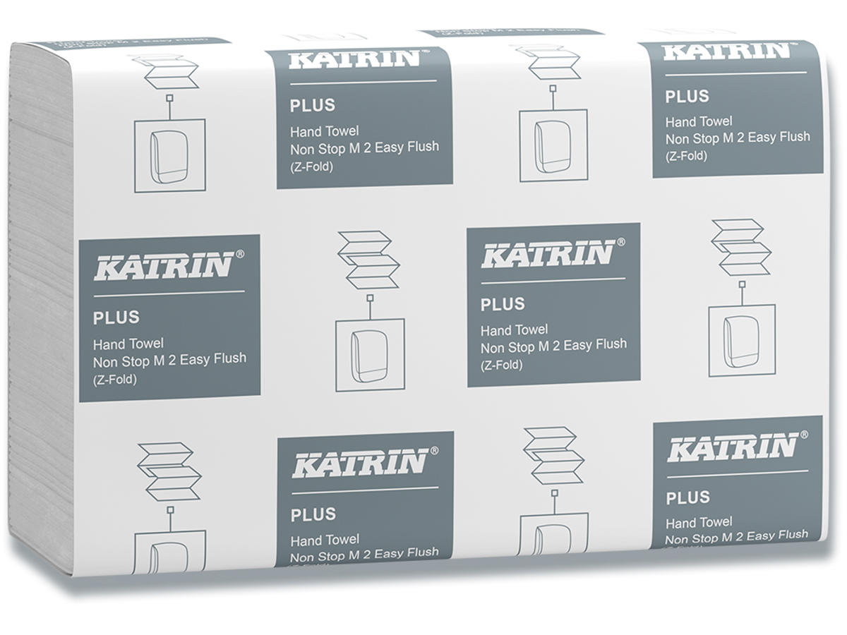 Katrin Plus er et fremragende valg, både når det gælder funktion og kvalitet. De seperate kædefoldede håndklædeark er i førsteklasses kvalitet, og sikrer med sin et-ark-ad-gangen funktion et kontrolleret forbrug samt høj hygiejne. Prægningen bidrager til høj absorbering. Emballagens ergonomiske greb gør det let at bære flere håndklædeark i én hånd. Papiret er udviklet til at være hurtigt opløsende, hvilket blandt andet kan være ideelt hvor blokeringer ofte forekommer.