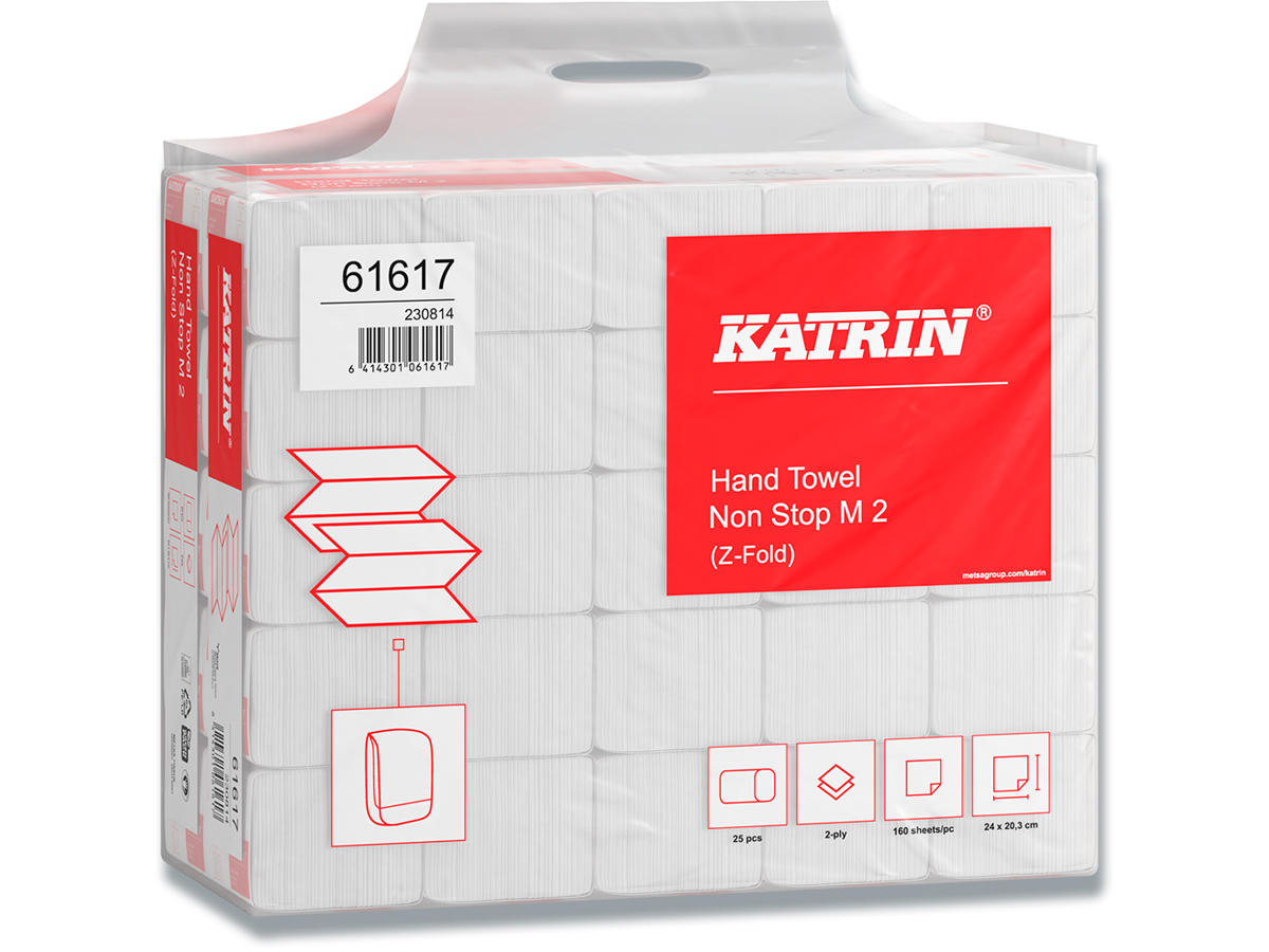 Katrin Papirhåndklæde Z-vægt Non-Stop M 160 ark pr pakke 2-lags, Handy Pack