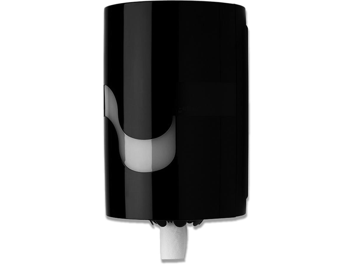 Dispenser til håndklæderuller med centertræk. Med skueglas som gør det nemt at se hvornår der er behov for genopfyldning.