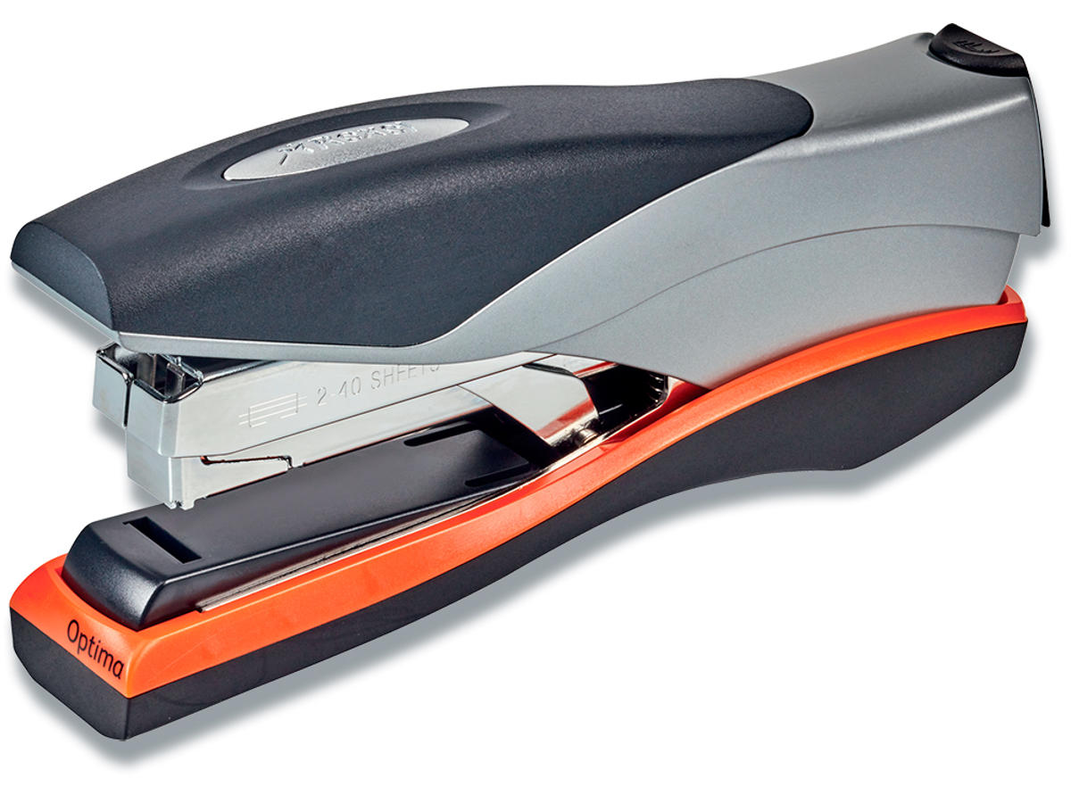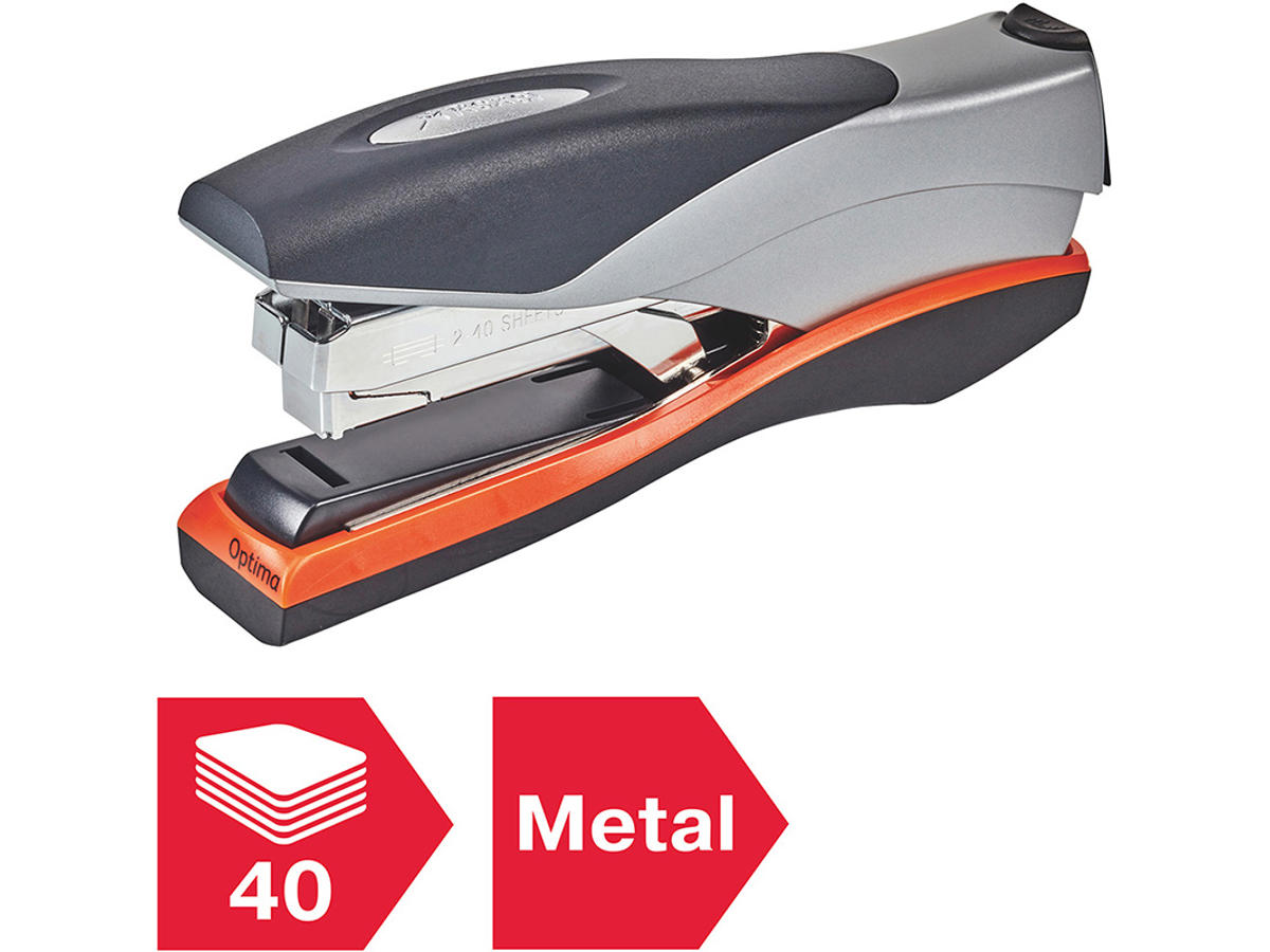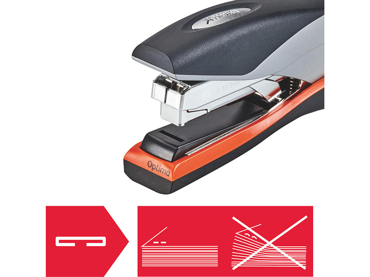 Rexel Optima 40 er højydelses- 40 arks hæftemaskine, hvor klamme ikke sætter sig fast. Pladsbesparende, fladhæftningsteknologi og nøjagtig hæftning ved brug af Rexel Optima 56 hæfteklammer. Optima 40 er med lavkraftsteknologi, der sikrer mere ydelse og 50 % mindre brug af kraft. Med en hæftedybde på 70 mm er den holdbar og bekvem at bruge. Leveres med æske med 1000 Optima 56-hæfteklammer.
