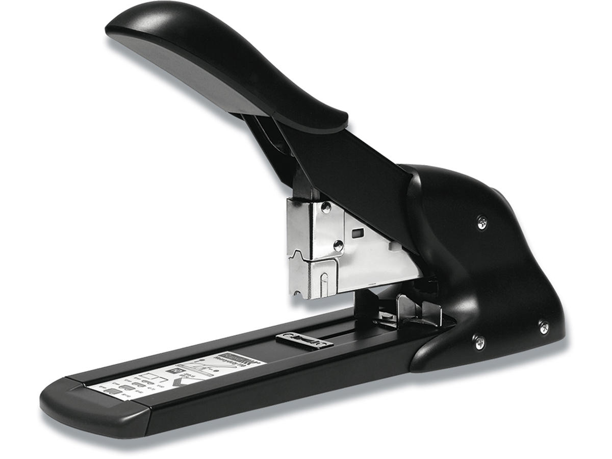 Robust, frontladning af klammer, heavy duty blokhæftemaskine med udveksling for høj hæftningskapacitet. Perfekt i postrummet og kontoret.