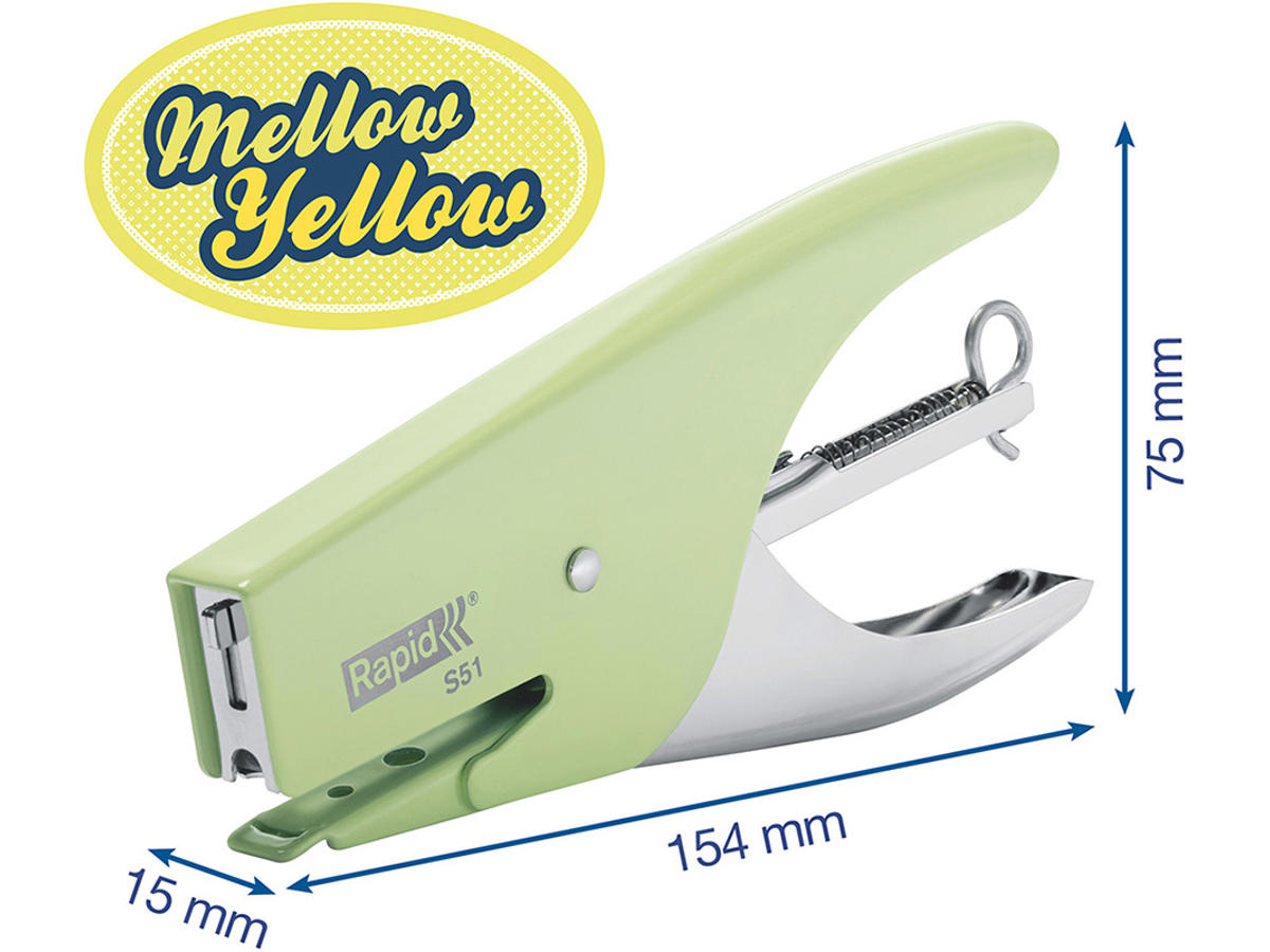 Handy alt-i-stål og gribevenlig hæftetang til kontoret, i hjemmet og til skole brug. Uimodståeligt, effektivt design med retro farver og cool finish.