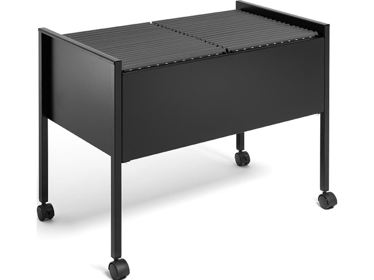 Hængemappevogn til ca. 100 stk. A4-hængemapper. Udstyret med fire hjul, to med bremser til stabilitet under brug. Af epoxy polyester belagt stål til at give ridsefast overflade. Leveres flad pakket med monteringsvejledning. Mål:BxHxD 760x592x425mm