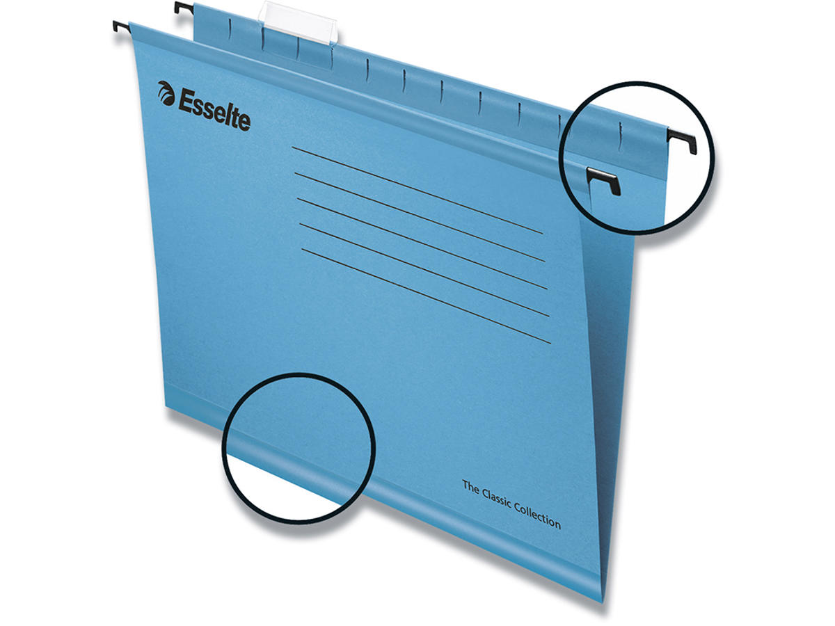 Hængemapper, 25 stk, Folio, Blå, Esselte Classic Folio