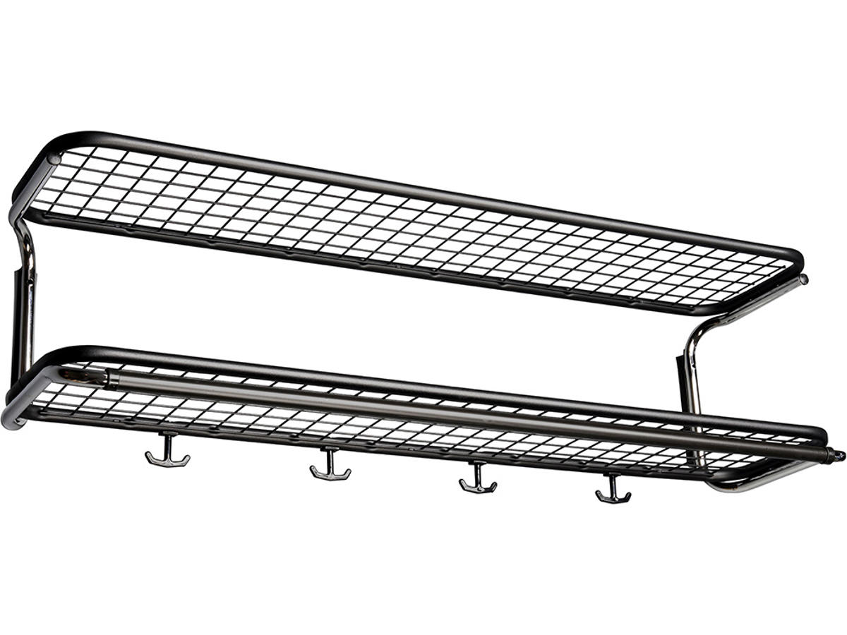 - Hylde og konsol i stål med kroge i plast.