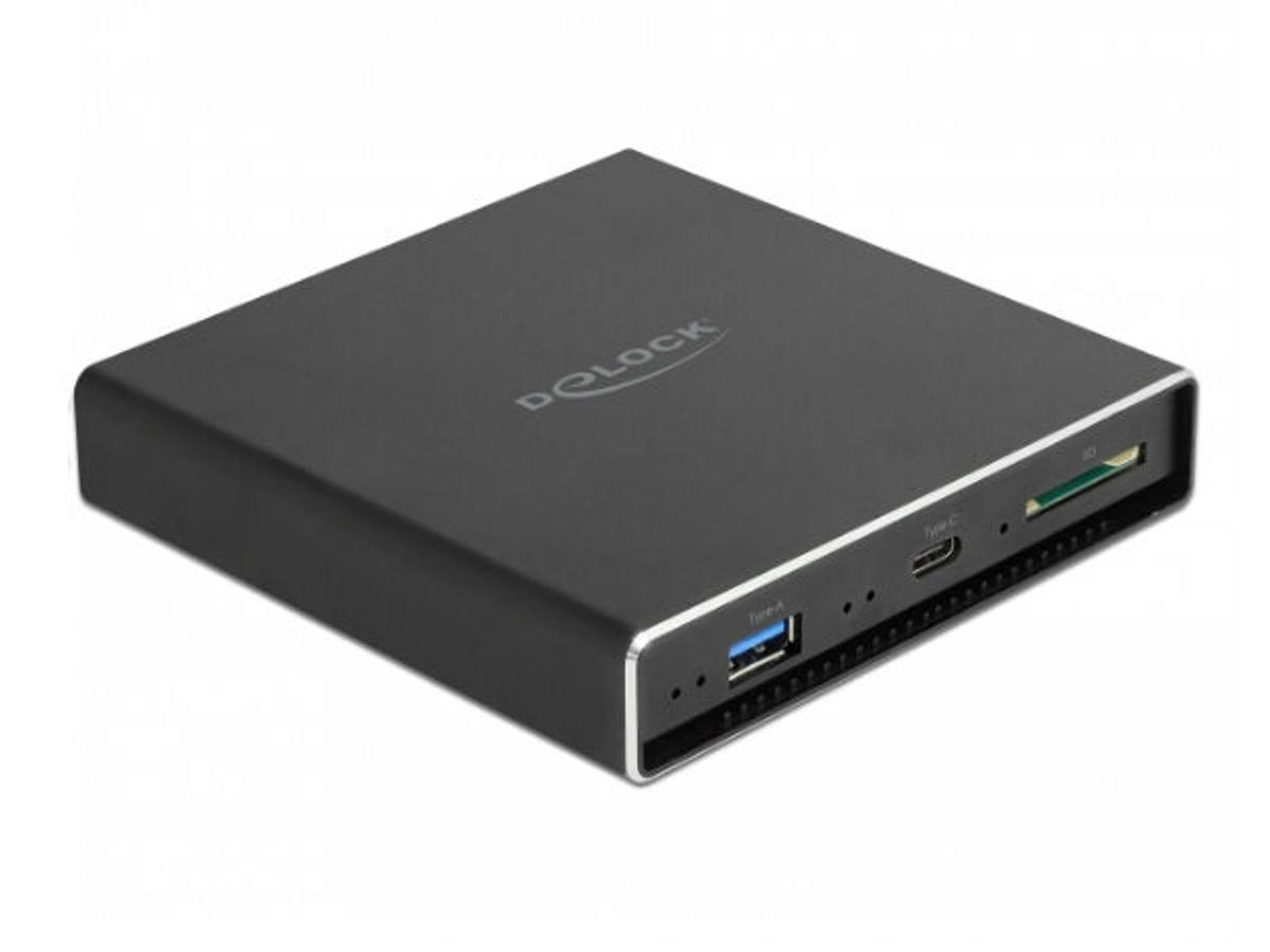 The aluminium enclosure by Delock enables the installation of a 2.5″ SATA HDD / SSD. Different USB devices can be connected to the USB Type-A and USB Type-C™ port. The SD slot could be used for reading and writing SD memory cards. The enclosure can be connected via USB cable to the PC or laptop.