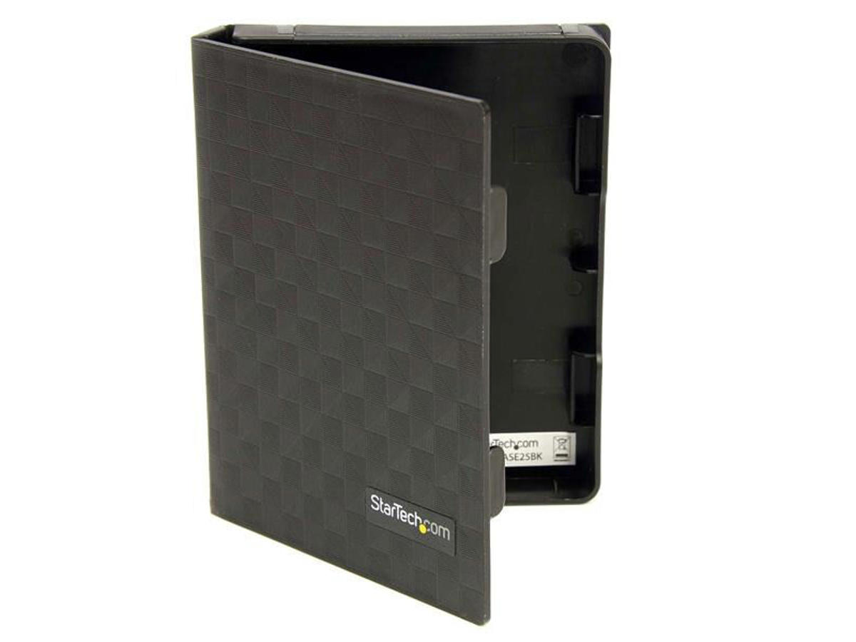 StarTech.com HDDCASE25BK. Etui-type: Etui, Materiale: Plast, Produktfarve: Sort. Bredde: 82 mm, Dybde: 105 mm, Højde: 15 mm. Pakkebredde: 140 mm, Pakkedybde: 395 mm, Pakkehøjde: 17 mm. Antal pr. pakke: 3 stk. Compliance-certifikater: RoHS, Certificering: CE, REACH
