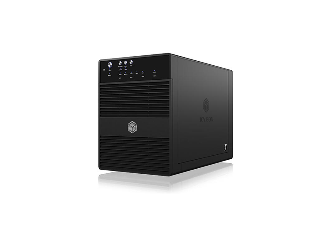 In case two HDDs are not enough: In this wonderful JBOD (=Just a bunch of disks) enclosure, four 3.5" HDDs can be mounted. Without using any screws, the HDD can be mounted and replaced. Even while in operation.