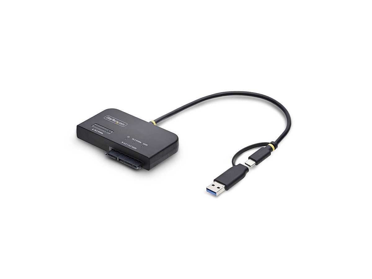 Access and manage M.2 NVMe and 2.5 in/3.5 in SATA SSDs/HDDs through a single USB-C or USB-A 10Gbps connection. The 2-in-1 NVMe and SATA adapter enables simultaneous read and write access for fast data transfer, recovery, and upgrades. This hard drive reader is a versatile solution for IT professionals performing backups, disk imaging, or maintenance on M.2 NVMe and legacy SATA drives.