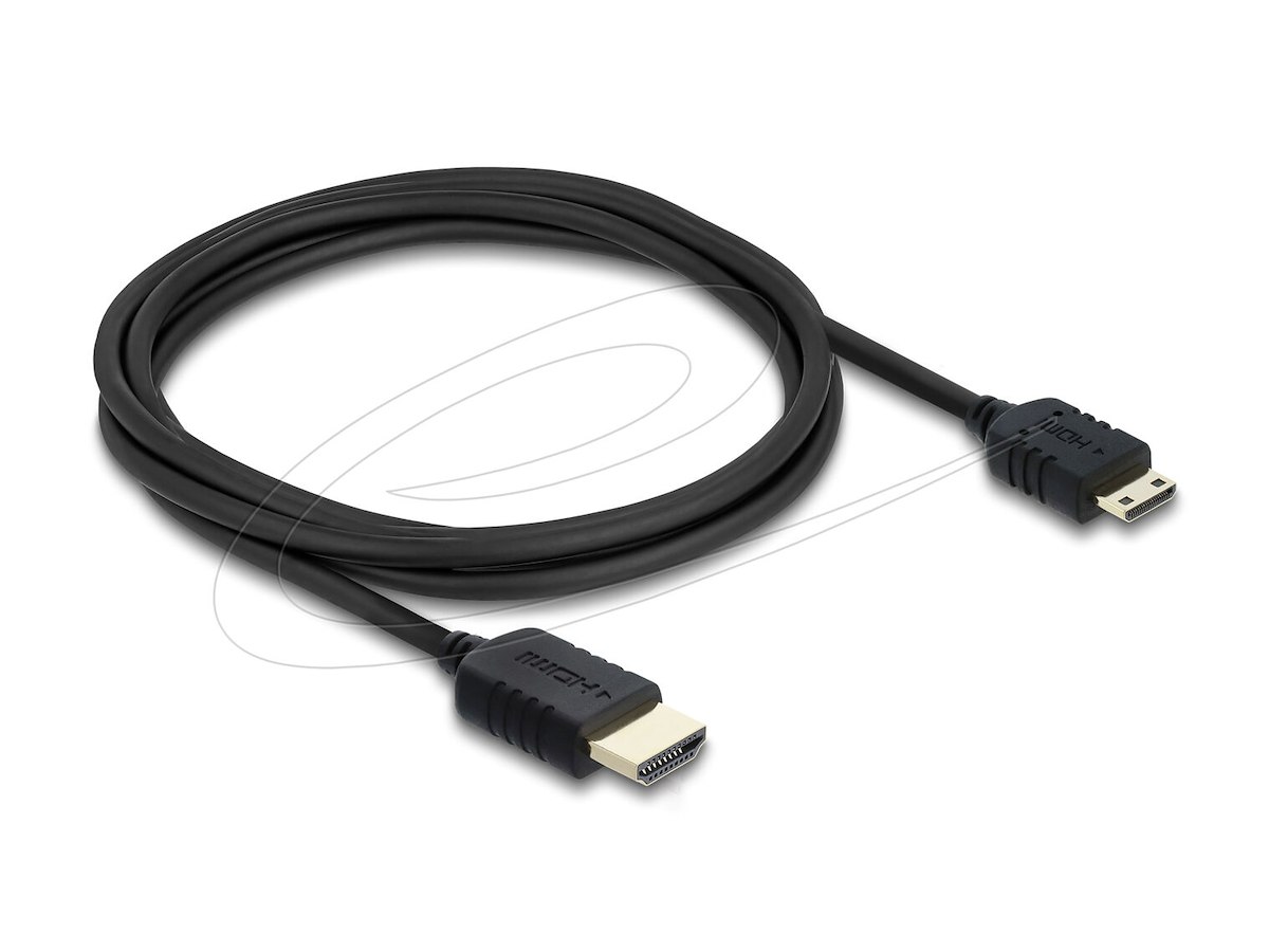DeLOCK 81685. Kabellængde: 2 m, Stik 1: HDMI Type A (Standard), Stik 1 køn: Hanstik, Stik 2: HDMI Type C (Mini), Stik 2 køn: Hanstik, Stikforbindelse kontakter plettering: Guld, 3D, Maksimal opløsning: 7680 x 4320 pixel, Dataoverførselshastighed: 48 Gbit/sek., Produktfarve: Sort