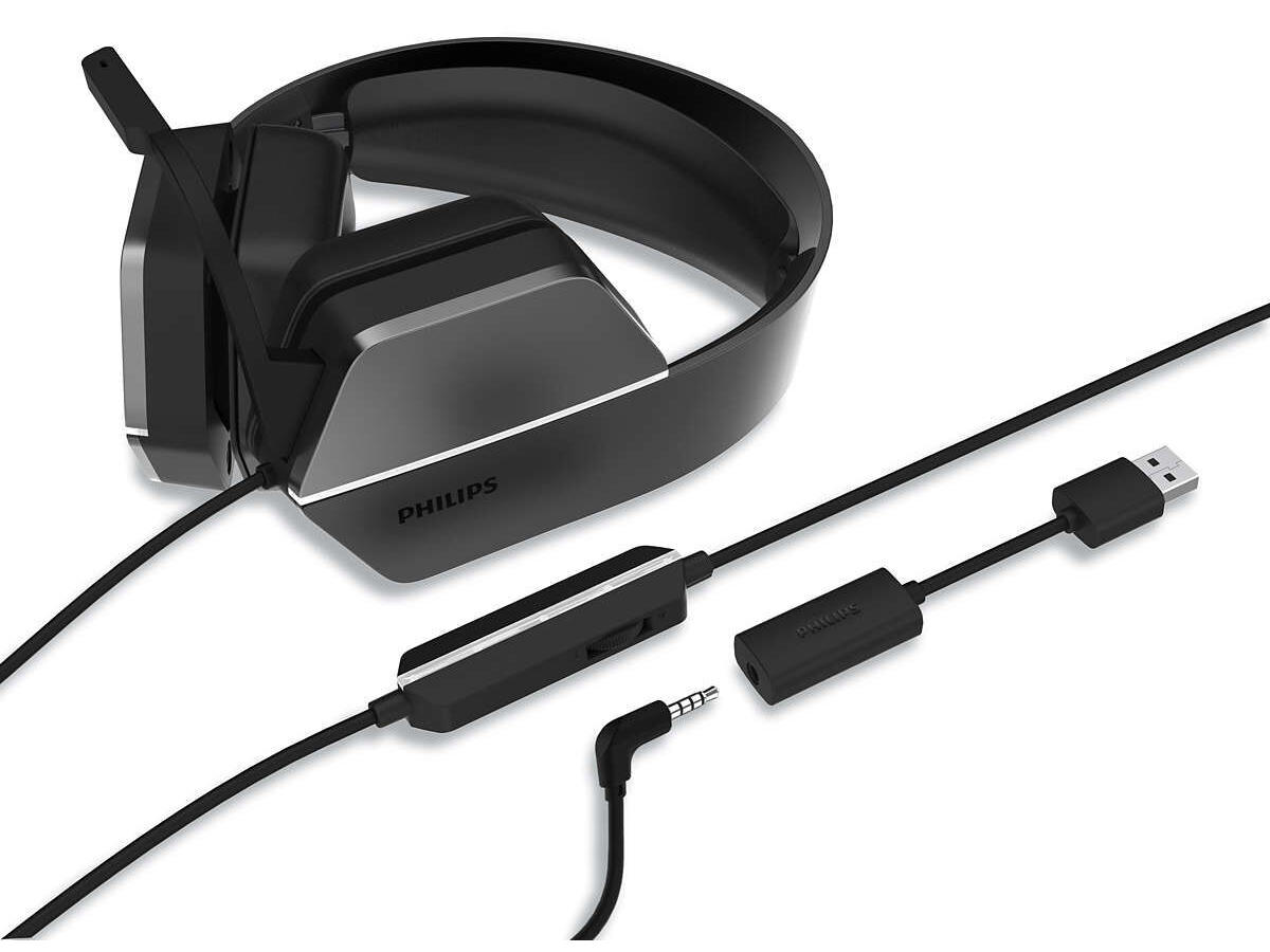 Stilfuldt design, ørepuder i kunstlæder med viskoelastisk skum, 50 mm præcise akustiske enheder, aftagelig retningsbestemt mikrofon og DTS-surroundlyd giver en fantastisk komfort og fordybelse under gameplay