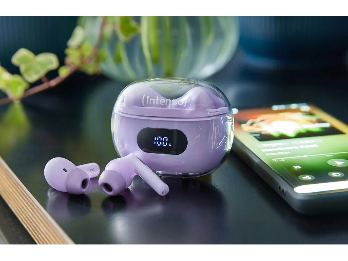 Discover the future of sound with the Intenso Buds Plus, your perfect companion for any situation. Available in stylish colors of white, black, lavender, and blue, these wireless earbuds offer not only an elegant design but also cutting-edge technology. Thanks to Bluetooth 5.4 and two integrated microphones, you can enjoy crystal-clear calls and a stable connection. The Active Noise Cancellation (ANC) with noise reduction of up to 25dB ensures you can fully immerse yourself in your music or conversations. The Environmental Noise Cancellation (ENC) further enhances call quality by reducing distracting background noise. -