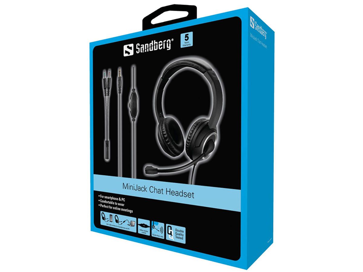 Med Sandberg MiniJack Chat Headset får du flot lyd pakket ind i et stilrent headset. Polstret hovedbøjle og bløde ørepuder gør headsettet behageligt at have på, selv i længere tid ad gangen. Kan tilsluttes direkte til smartphone. Adapter til PC medfølger. Justerbar mikrofonarm og hovedbøjle så de nemt tilpasses dine behov. Tilslut headsettet og det er klar til brug med det samme.