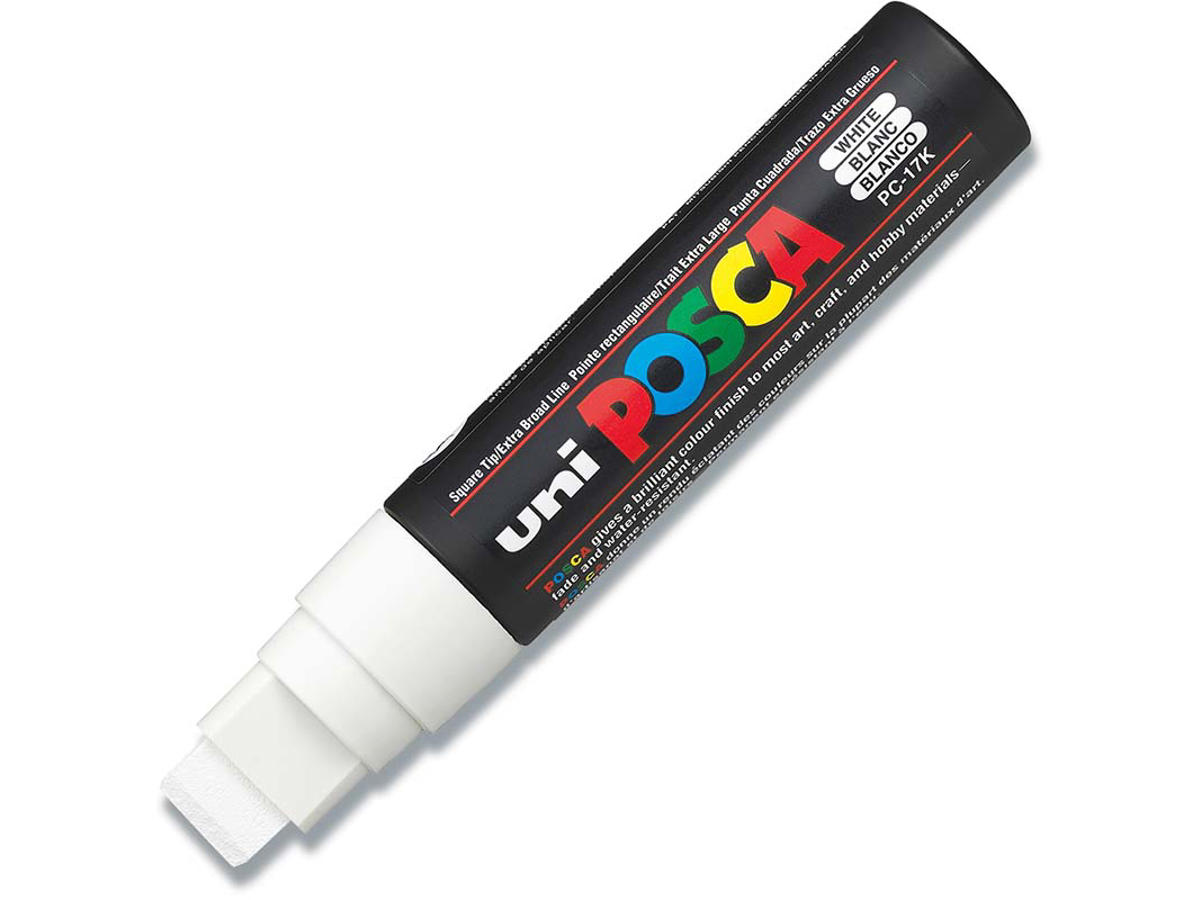 POSCA PC-17Ks ekstra-brede skrå spids er det medlem af POSCAs sortiment, som er designet til eksperter. POSCA PC-17Ks XXL spids er de professionelles og kunstnernes favorit til at skabe store kunstværker.