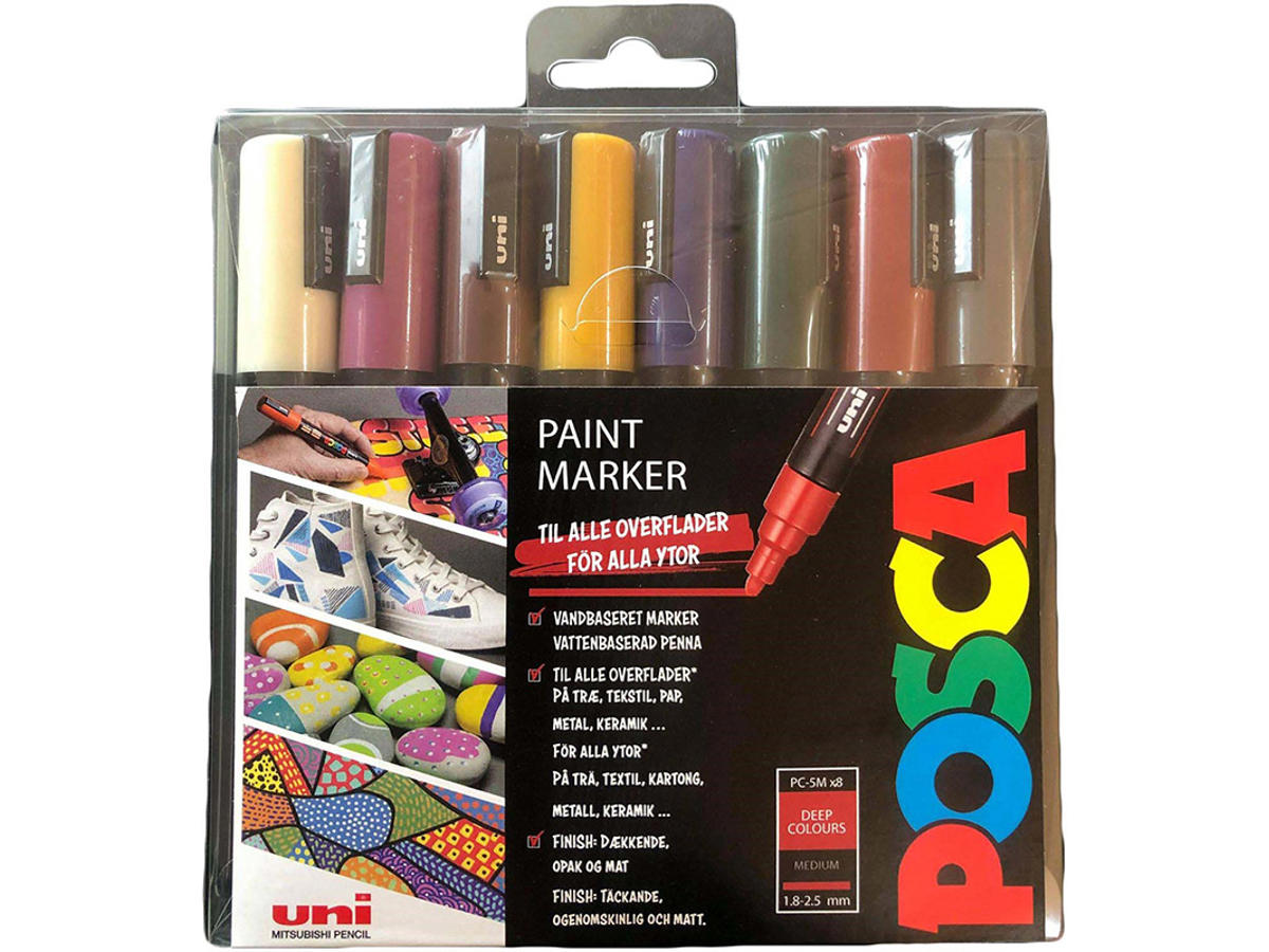 Paint marker, 1.8-2.5 mm, 8 assorterede mørke farver, Rund spids, uni Posca PC-5M