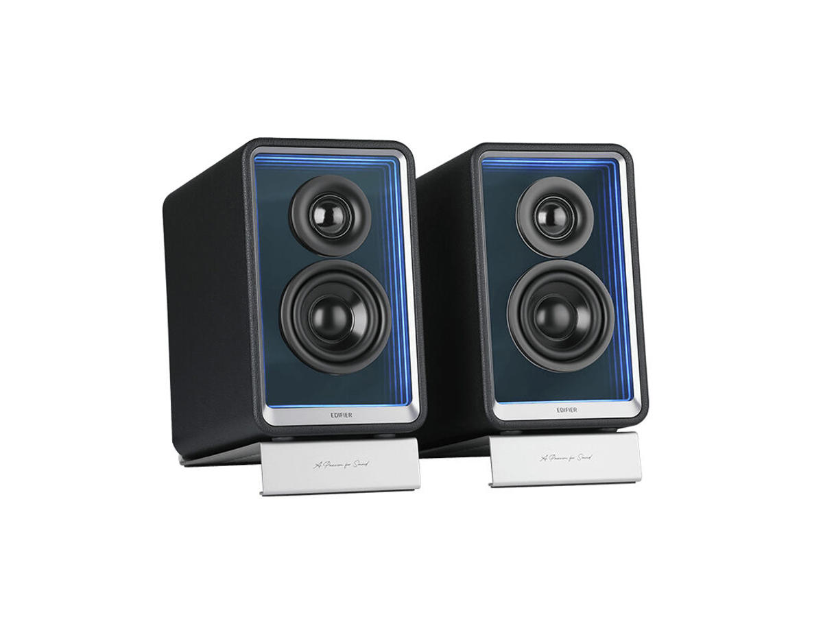 With the bundled aluminum speaker stands, the sound coloration effects can be diminished effectively, which arise from the sound reflection against the desktop surface.