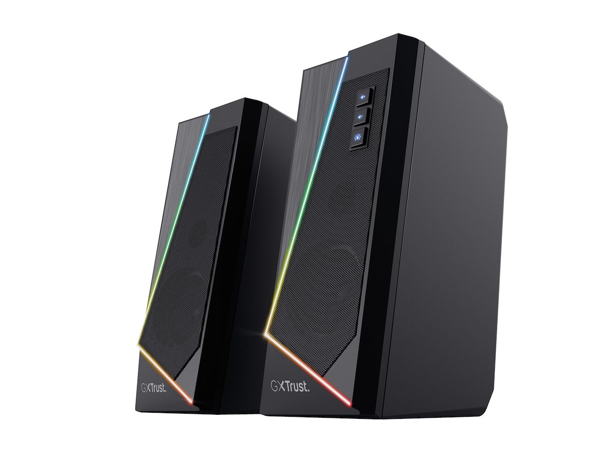 With a sleek design and subtle RGB lighting, the Trust GXT 609 Zoxa is a stylish addition to any desk. On top of that, this stereo-speaker set is easy to use and it doesn’t even need a wall plug. They turn on automatically when switching on your PC.