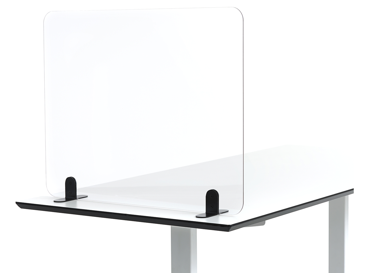 Skærmene er fremstillet i PETG der tåler rengøring med sprit og almindelige rengøringsmidler, og er flot udført med afrundede hjørner, og sorte pulverlakerede fødder.