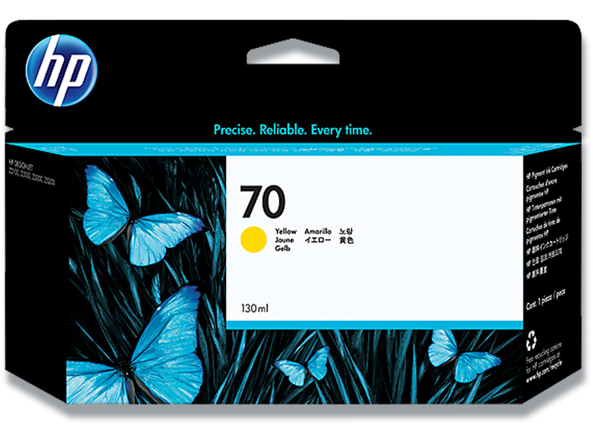 Blækpatron, 1 stk, Yellow-gul, 130 ml, HP 70
