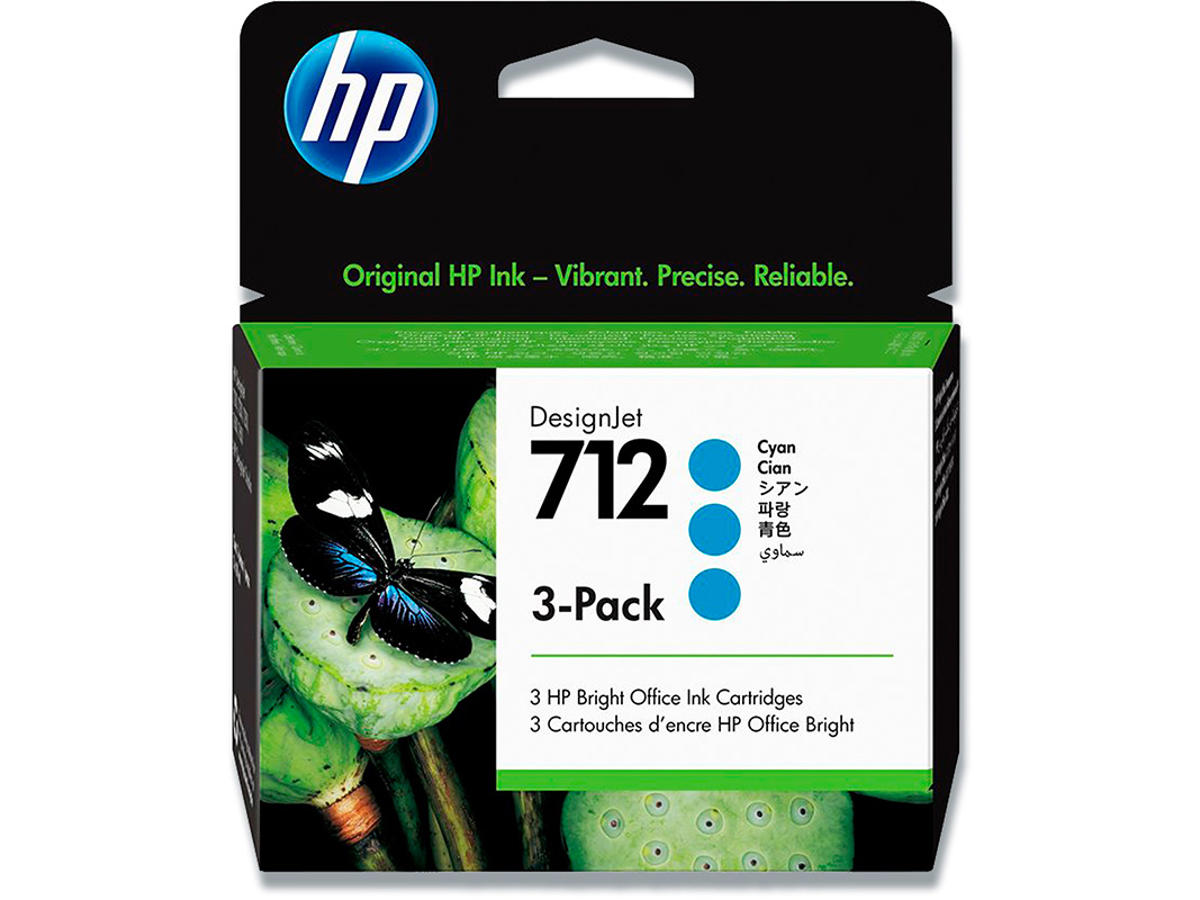 Blækpatroner, 3 stk, Cyan-blå, 29 ml, HP 712