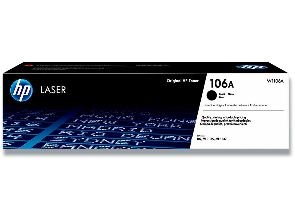 Toner, 106A, Black-sort, 1.000 sider, HP W1106A