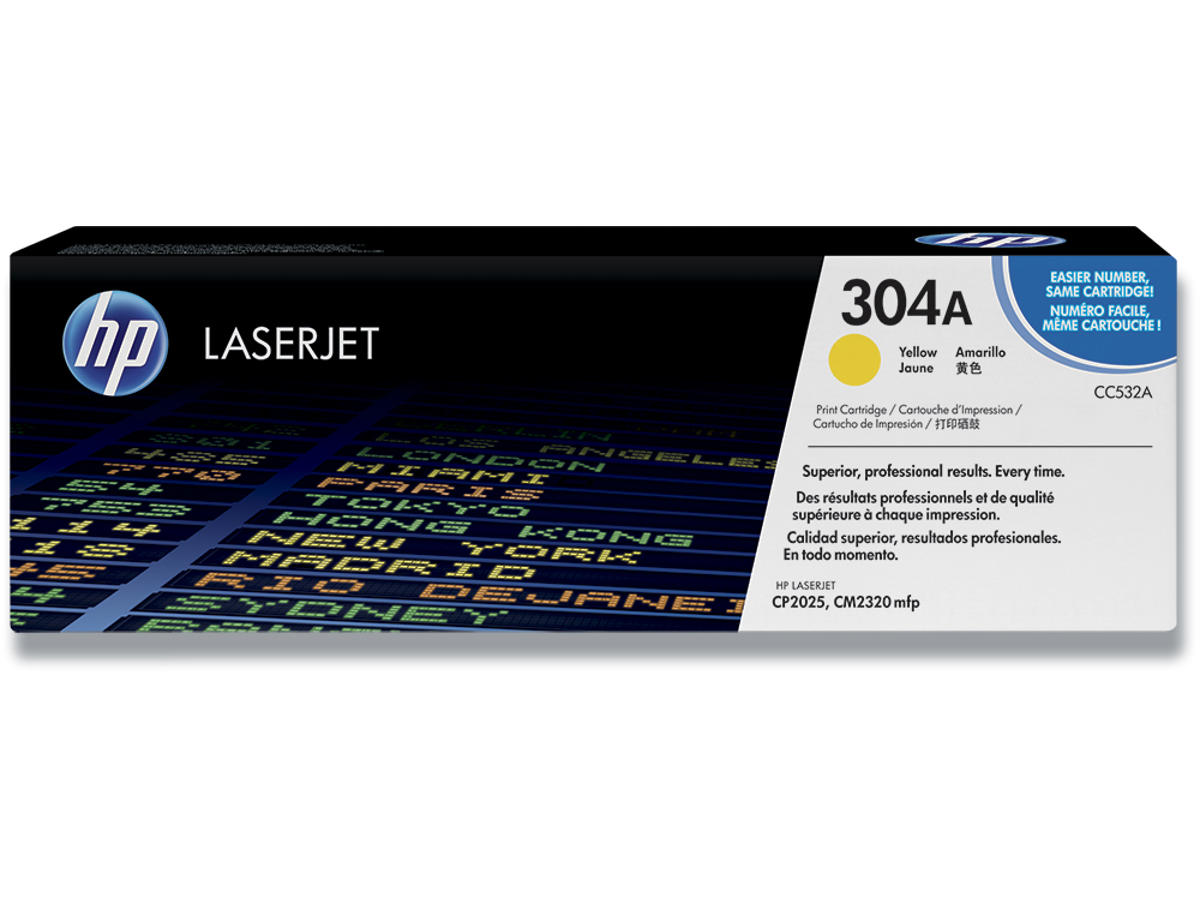 Toner, 304A, Yellow-gul, 2.800 sider, HP CC532A