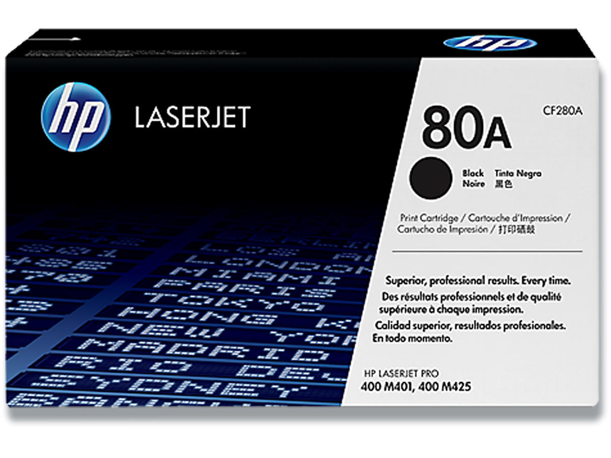 Toner, 80A, Black-sort, 2.700 sider, HP CF280A