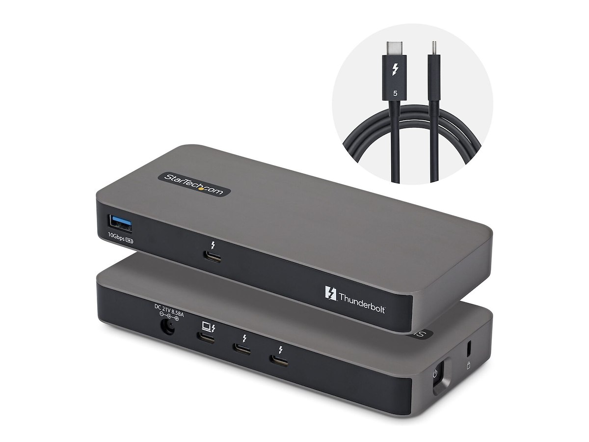 Thunderbolt 5 hub with three TB5 downstream ports for triple 8K video, 140W charging, USB-A, and Thunderbolt Share