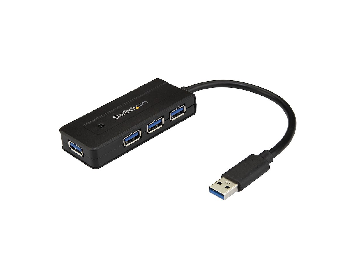 This 4-port USB 3.2 Gen 1 hub turns a single USB port on your laptop into four USB-A ports and features a compact, USB-powered design that makes it perfect for travel. For devices that demand extra power, the hub also comes with an external power adapter.