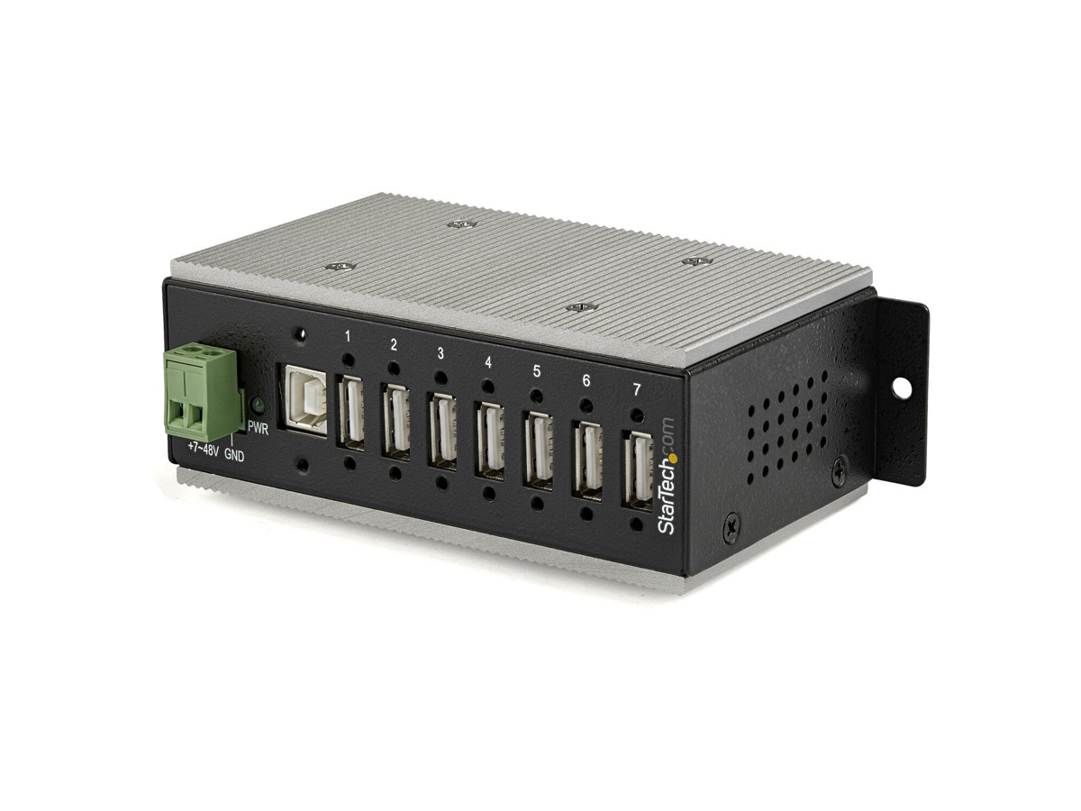 This industrial USB hub delivers reliable performance with a metal, heavy-duty housing. It supports wide-range 7-48V DC terminal block input, giving you the flexibility to power the hub as required, based on your own power input capabilities.