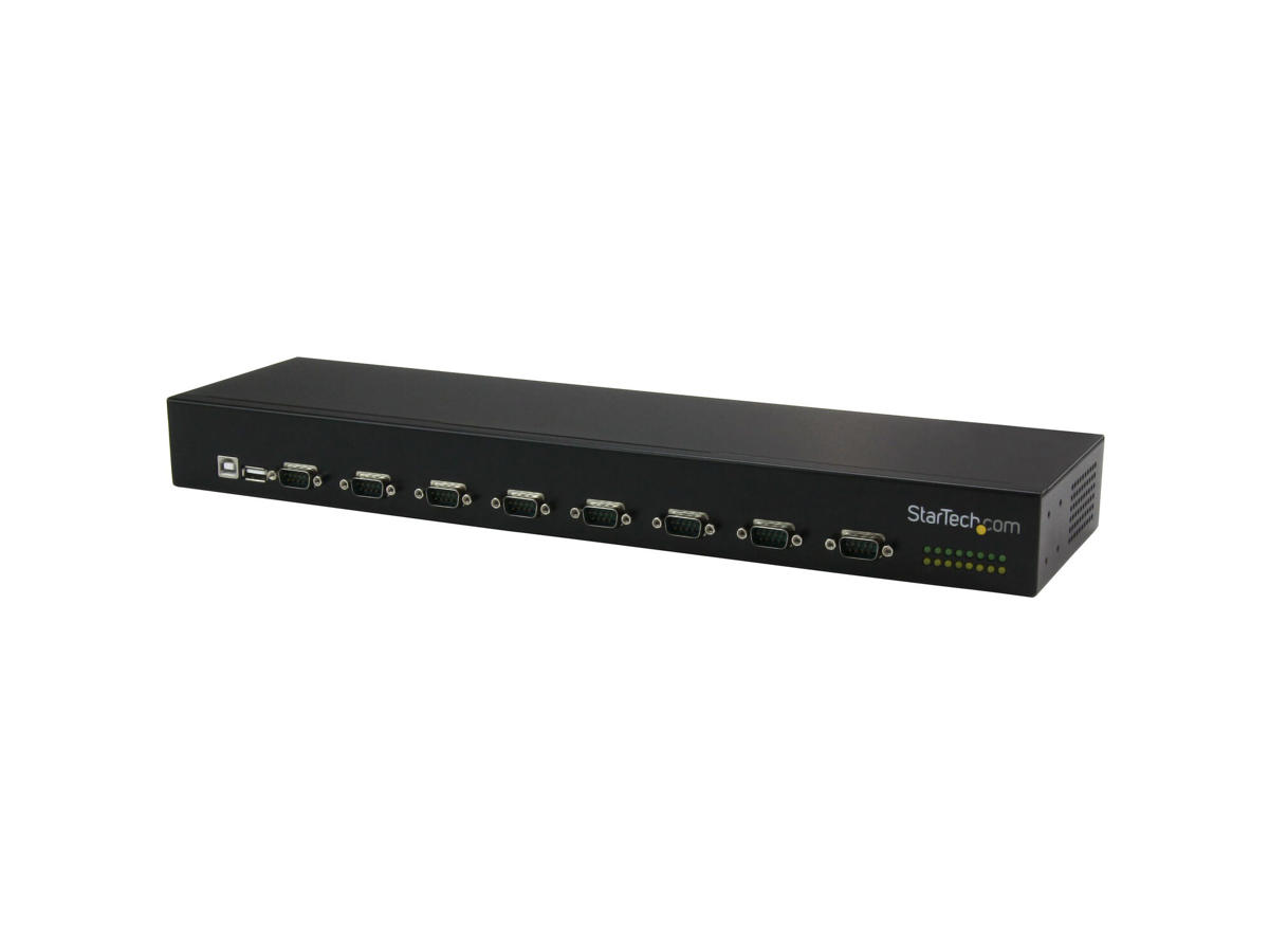 This rack-mountable USB serial hub (FTDI) lets you add eight serial ports (RS232), with full control from your desktop or laptop computer system using a single USB port. The daisy-chain function gives you a cost-effective and scalable way to increase your serial port count and expand as your needs grow, without investing in a more expensive serial hub.