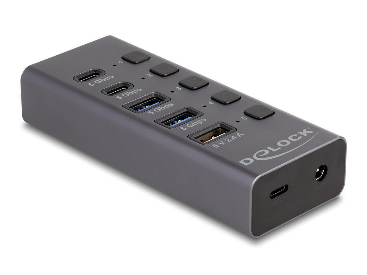 DeLOCK 64248 interface hub USB 3.2 Gen 1 (3.1 Gen 1) Type-C 5000 Mbit/s Grå