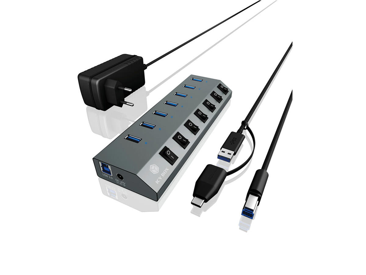 ICY BOX IB-HUB1701-C3 USB 3.2 Gen 1 (3.1 Gen 1) Type-B 5000 Mbit/s Anthracit