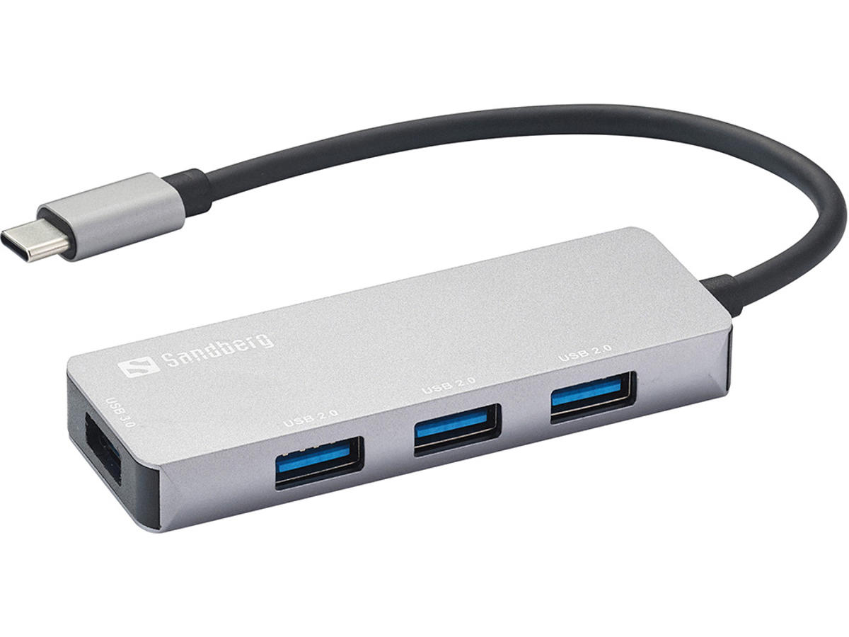 Med Sandberg USB-C Hub 1xUSB3.0+3x2.0 SAVER får du rig mulighed for tilslutning af ekstra USB udstyr på din enhed med USB-C port. Således kan du f.eks. have ekstern harddisk, printer og mus tilsluttet samtidig.
