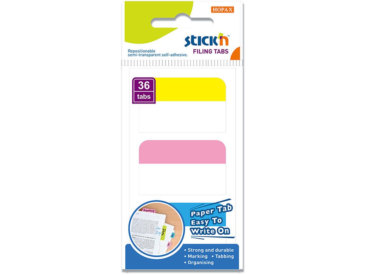 Indekser faner i karton og PP, der let kan fastgøres til papir eller andet, du hurtigt vil finde. 36 faner 28x45 mm i 3 farver. Stabil indeksfane, der tåler hyppig brug. Skriftdelen er pap og monteringsoverfladen er PP.