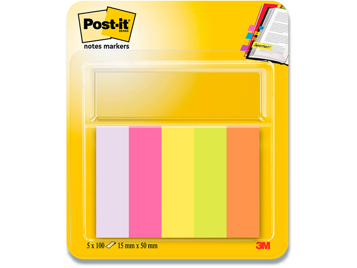De smarte farvede index faner er perfekte til markering af sider som man let vil kunne finde igen eller til opdelinger og markering af indhold.Post-it index faner har genklæbelig lim på halvdelen af fanen, så man nemt kan fjerne og flytte fanebladene efter behov.På den anden halvdel af fanen kan der nemt påføres tekst som kan indikere indhold.Markeringsblokken indeholder 5 forskellige farver med hver 100 stk. flytbare index faner. Fanerne måler 15mm x 50mm og er i farverne orange, grøn, gul, pink og violet.