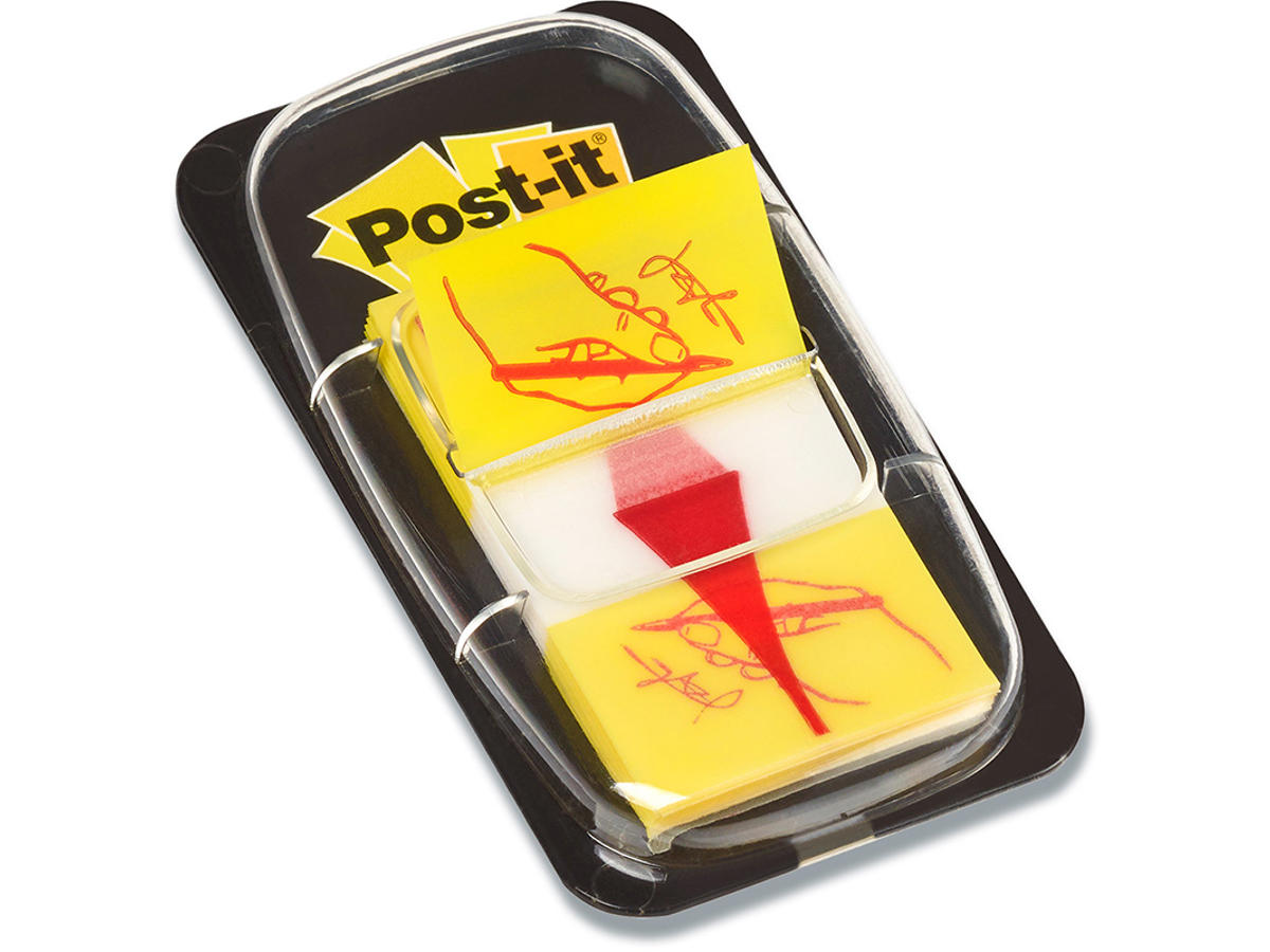 Praktiske engangsdispensere, som indeholder flytbare gule index der har påtrykt en blyant som kan henvise til steder hvor der skal laves underskrift. Index fanerne har genklæbelig lim på den transparente del af fanen, så man nemt kan fjerne og flytte fanebladene efter behov. Den anden halvdel af fanen er farvet gul og med den påtrykte røde blyant, er fanen praktisk til markering af steder hvor der skal laves underskift.