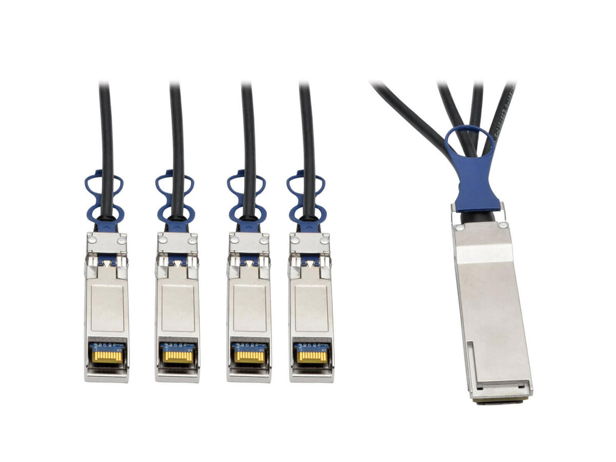 Splits a 40 GbE Network System to Four 10 GbE Servers, Switches and/or Adapters